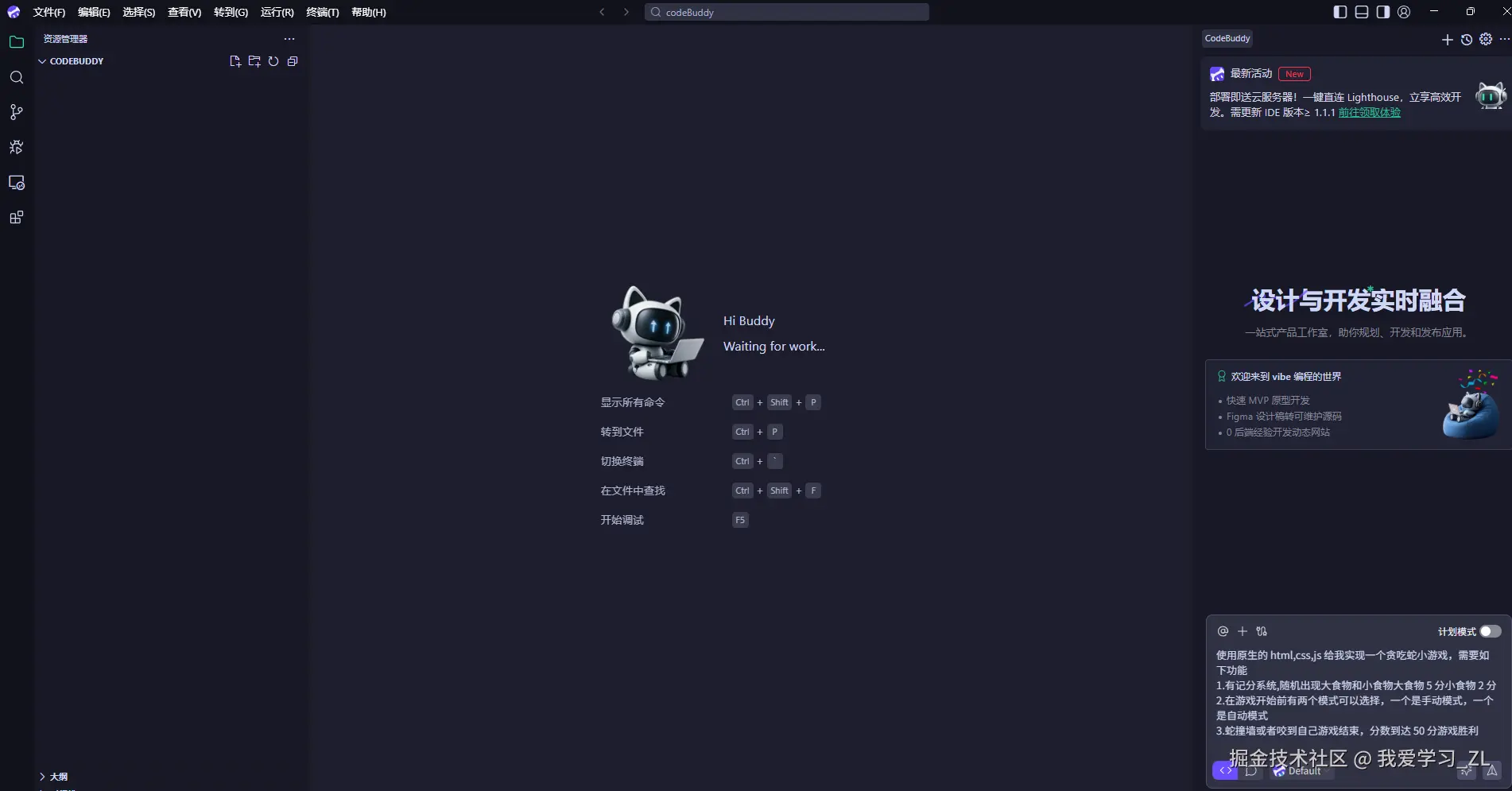 - 支持“聊天式指令生成代码”,可一次性生成多文件(如HTML、CSS、JS全套代码)。