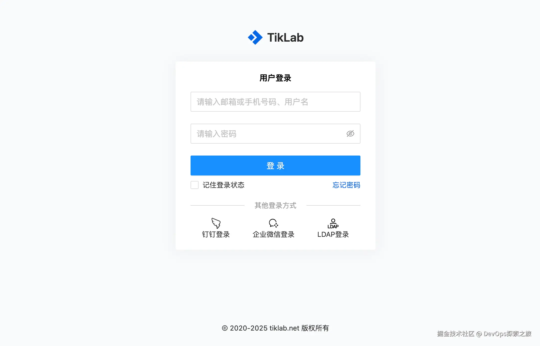 - 同时支持LDAP、企业微信、钉钉登录方式,具体配置见:配置详细