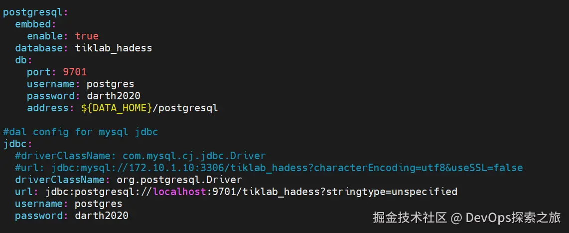 注意:使用外部数据库的时候,需要将内嵌数据库postgresql.embbed.enable后面的数据修改为false
