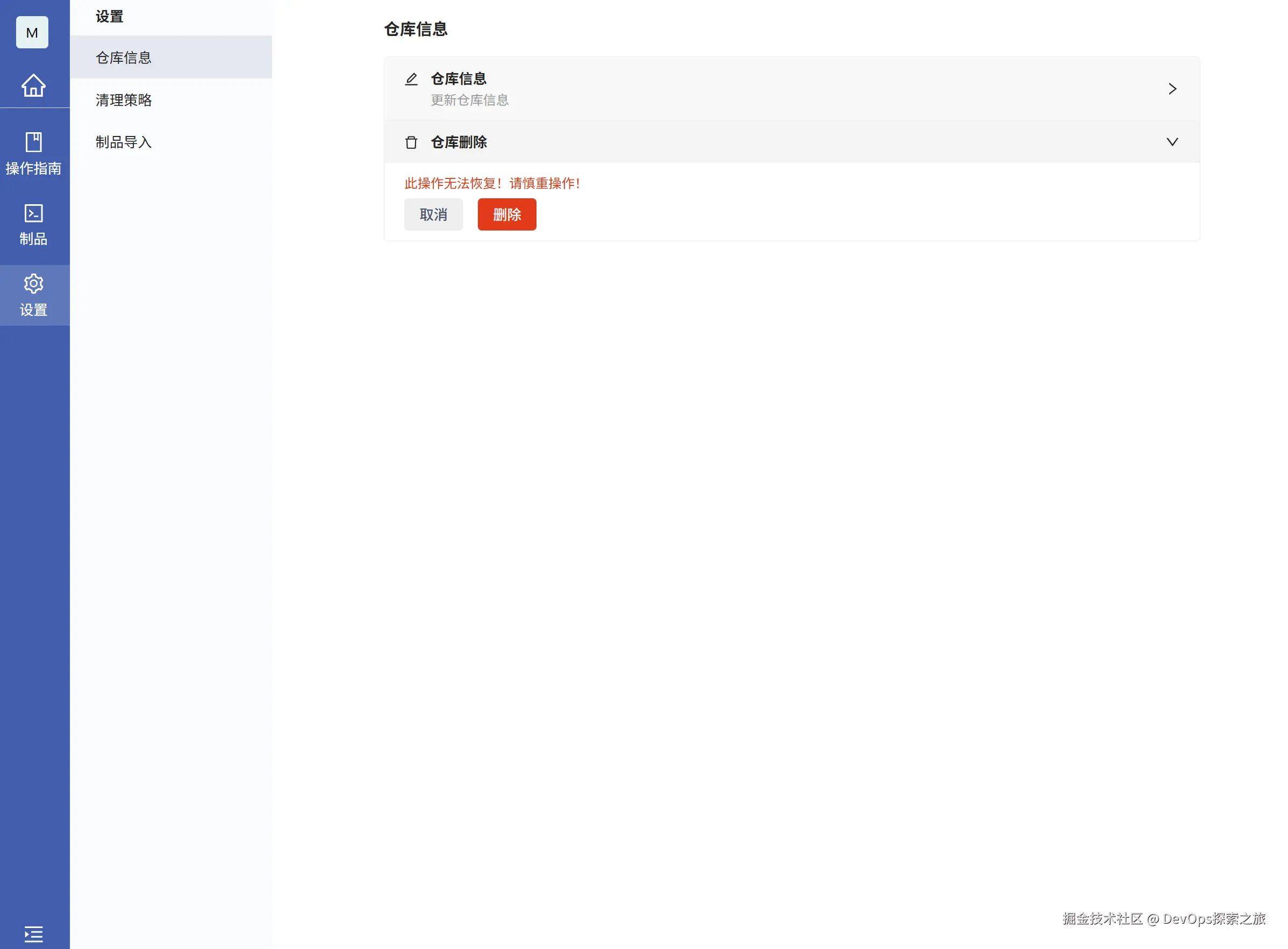 进入制品库,点击仓库设置找到仓库删除点击删除即可。