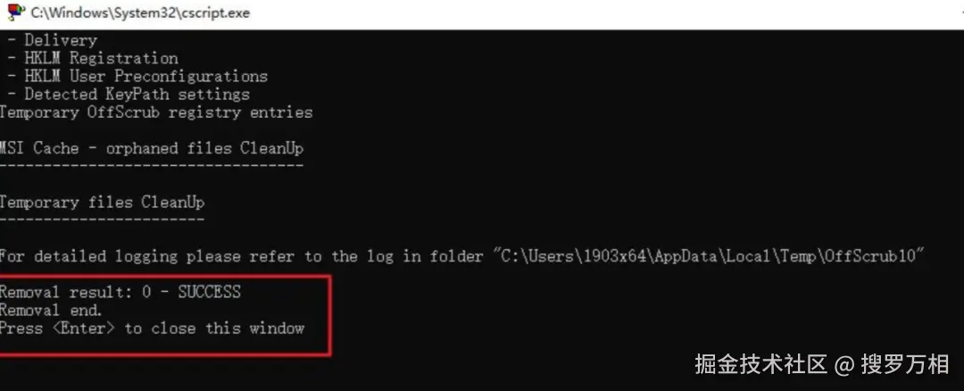 运行【Uninstall_office_C2R.bat】进行卸载的,看到success证明卸载完成,按【enter】键退出