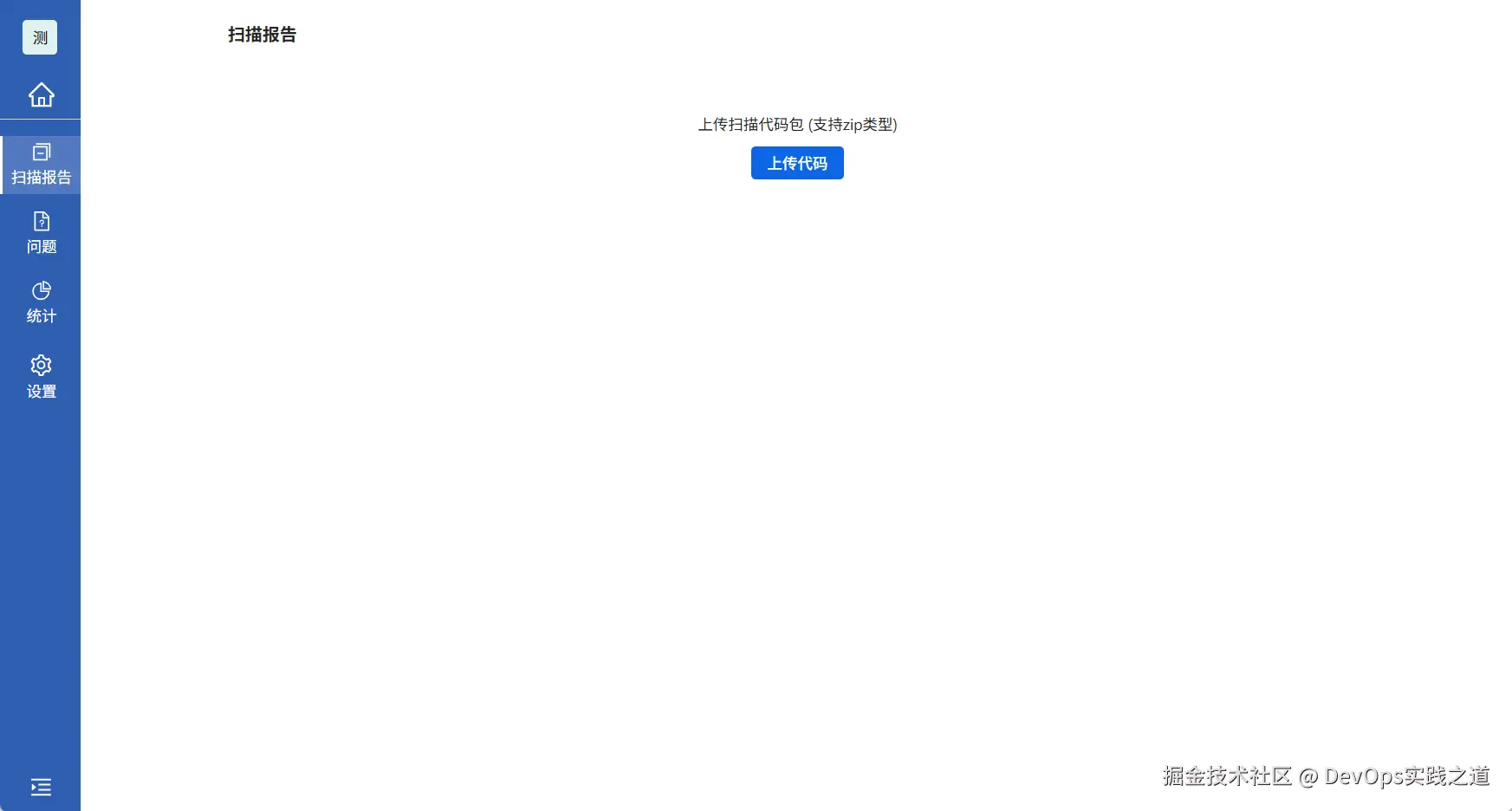 例如添加服务器扫描(包上传)方式的代码扫描。项目创建完成后,点击上传代码
