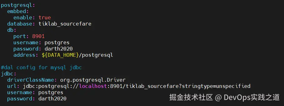 | postgresql.db.password | 使用内嵌数据库的密码,默认为darth2020,如果更改需要同时把jdbc.password中的数据库连接地址密码更改。 |