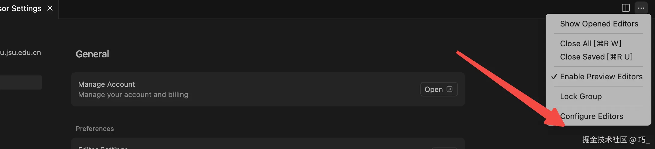 在原来的基础上选择右上角的更多也就是三个点,然后选择配置编辑器