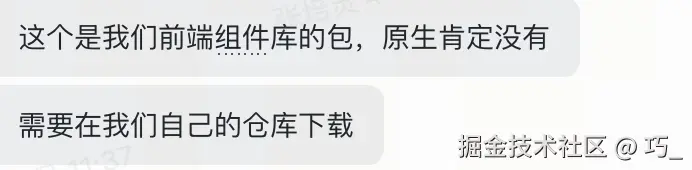 搞完这所有的一切,我安装基本上就可以安装依赖了,但是在我使用pnpm install命令安装依赖的时候,总有几个依赖说not found,然后我去npm官网上面也搜不到,然后我就去求助mt了: