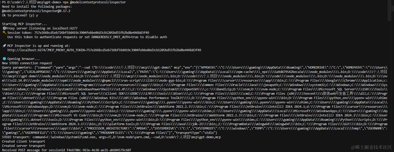 yarn --cwd "D:\\code\\个人项目\\mcp\\gpt-demo" mcp 指定目录下执行 yarn mcp 启动服务