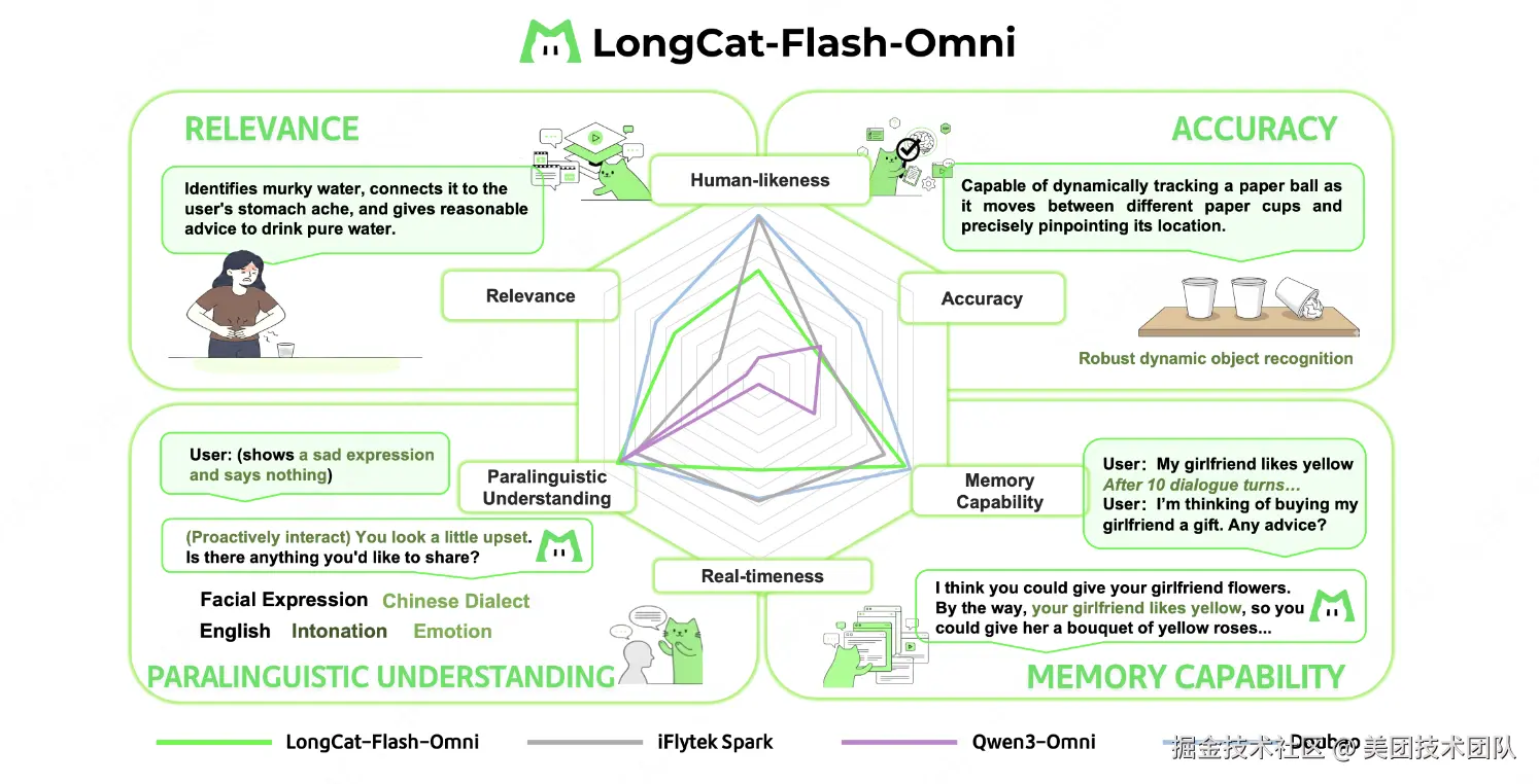 自9月1日,美团正式发布 LongCat-Flash 系列模型,现已开源 LongCat-Flash-Chat 和 LongCat-Flash-Thinking 两大版本,获得了开发者的关注。今天 LongCat-Flash 系列再升级,正式发布全新家族成员——LongCat-Flash-Omni。