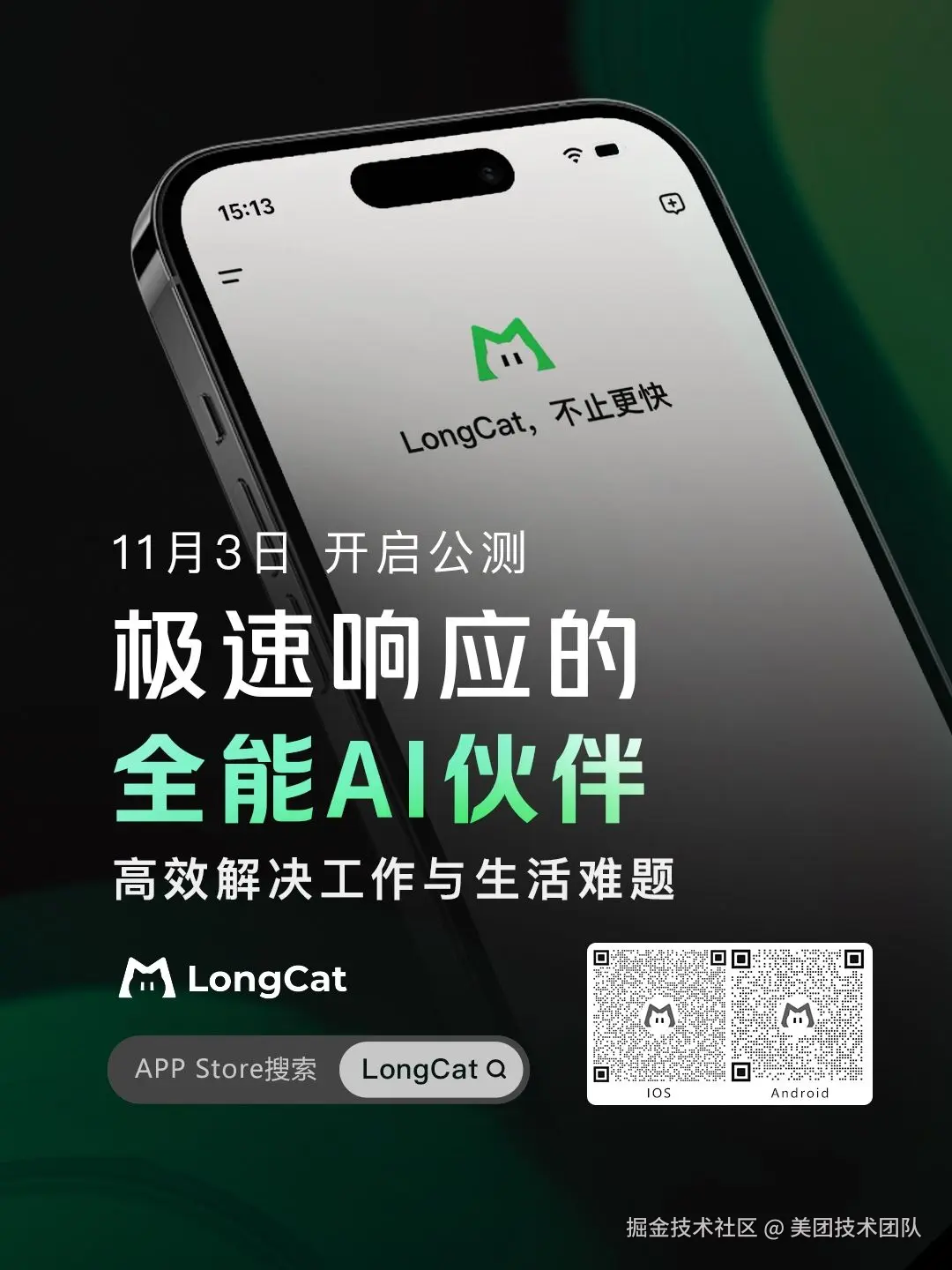 另外,我们非常激动的告诉大家,LongCat 官方 App 现已正式发布,支持联网搜索,还可以发起语音通话(视频通话功能敬请期待)。您可以通过扫描下方二维码下载使用,iOS用户可直接在APP Store中搜索“LongCat”获取。