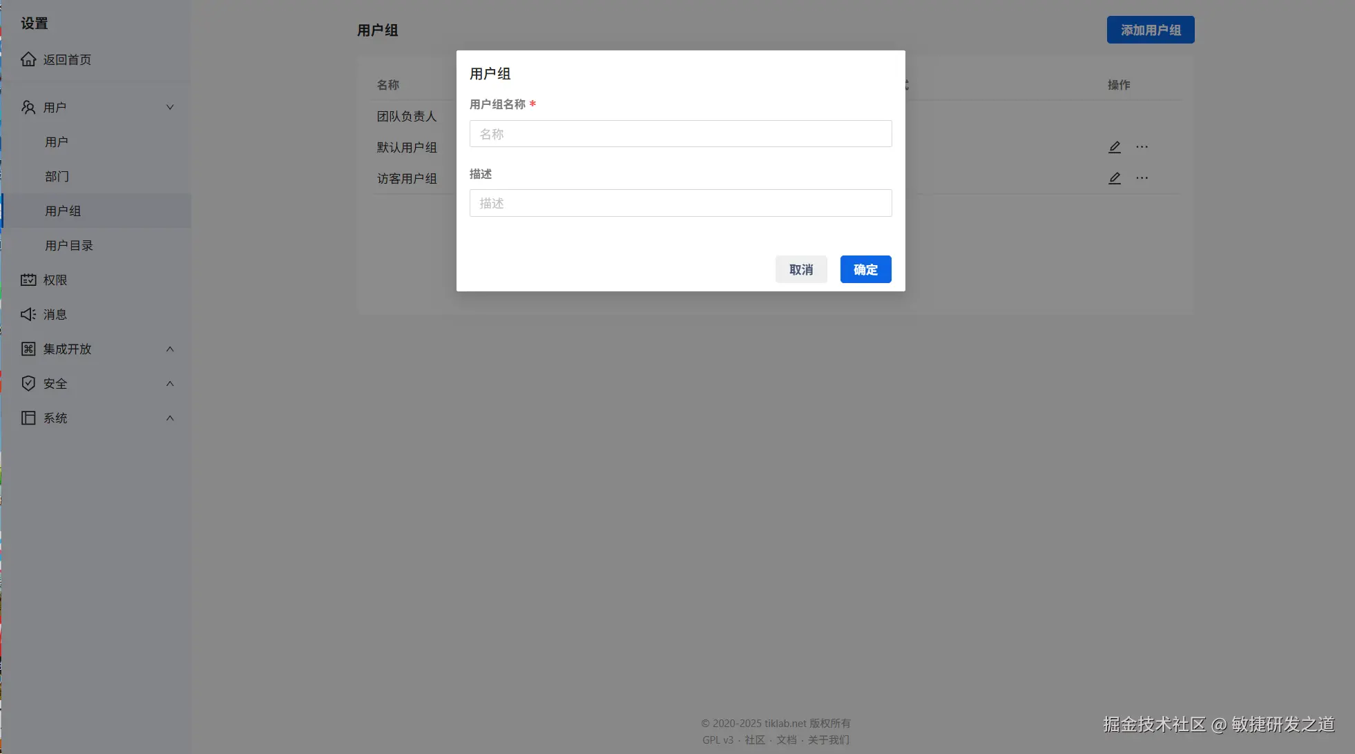 | 描述 | 非必填 | 为用户组设置描述 |