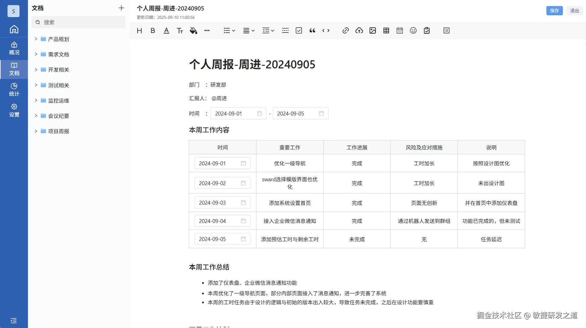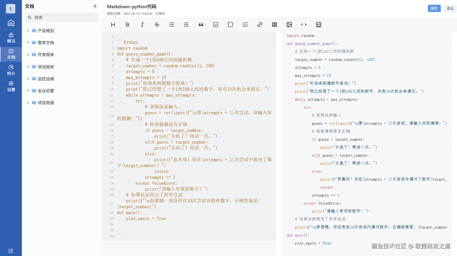 点击添加->添加markdown,系统会创建出一个名字为“未命名文档”的文档。修改内容和文档名称后点击保存,文档保存成功
