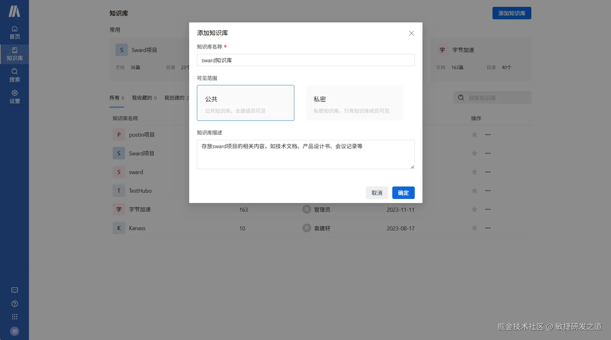 - 为防止误删,点击删除时,会需要填写当前知识库的名称