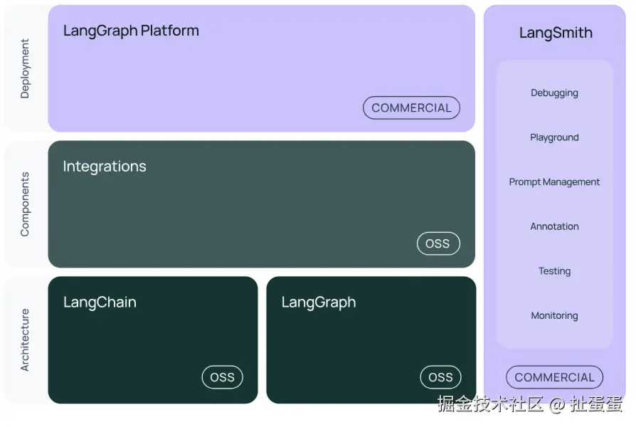 LangChain 生态还包括一些辅助库,用于调试、部署和增强功能。