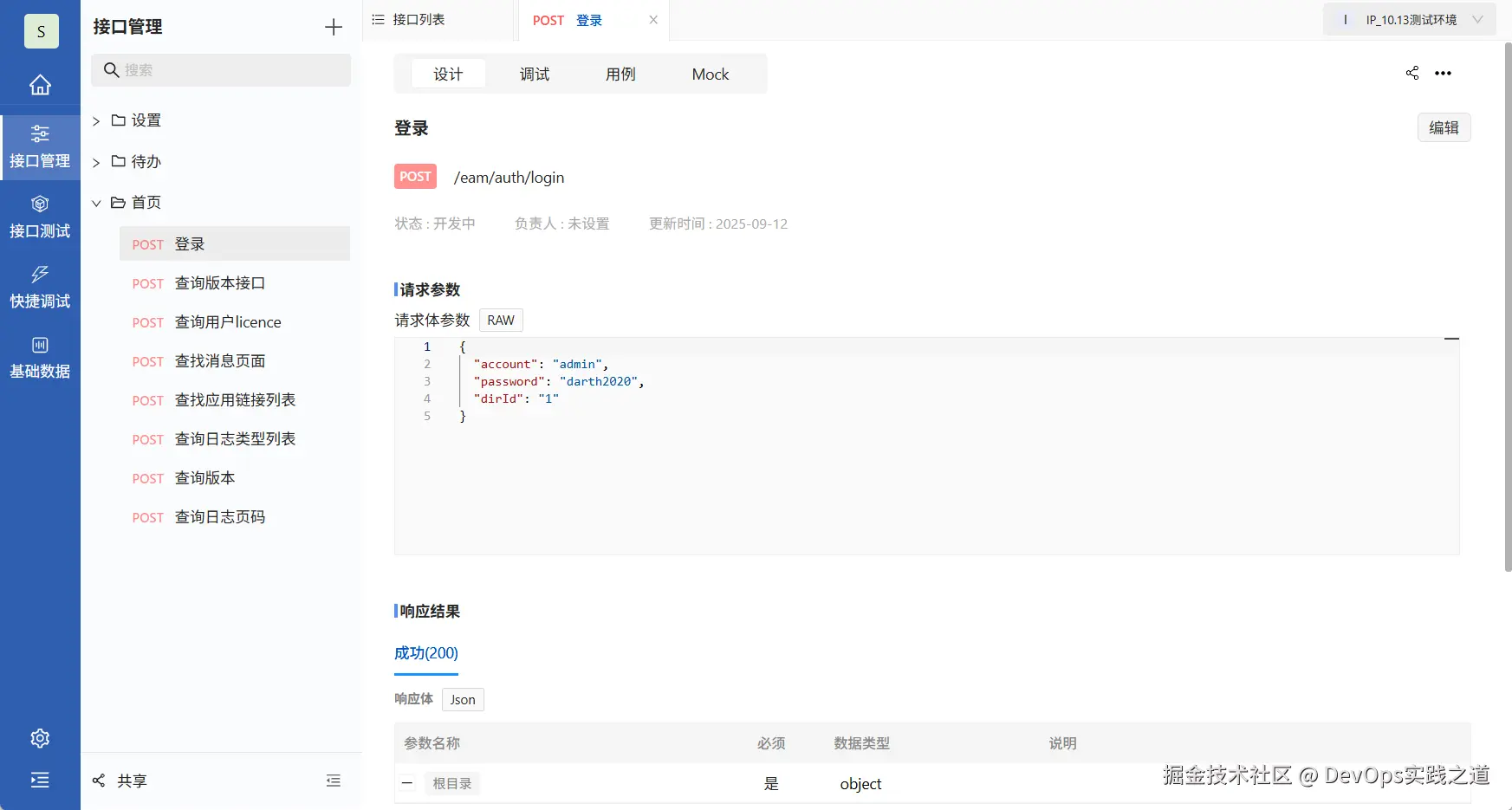 环境配置结束后,还可以对环境进行编辑、删除。在接口测试页面,点击右上角环境下拉框,选择测试接口所用的环境。