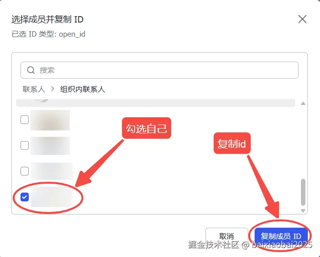 为了能让Agent知道发消息给谁,我们需要飞书的个人ID: