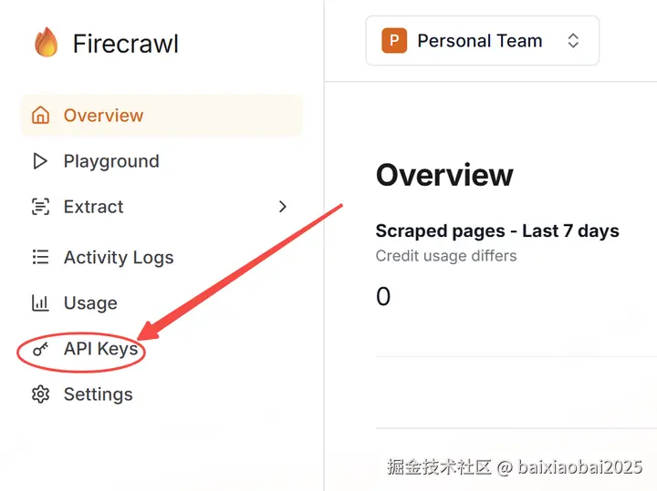 a. 从网页爬取工具Firecrawl 官网获取api key