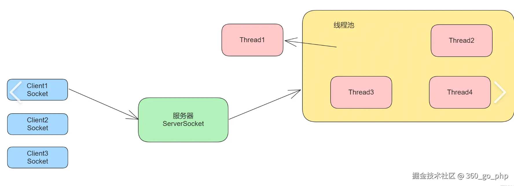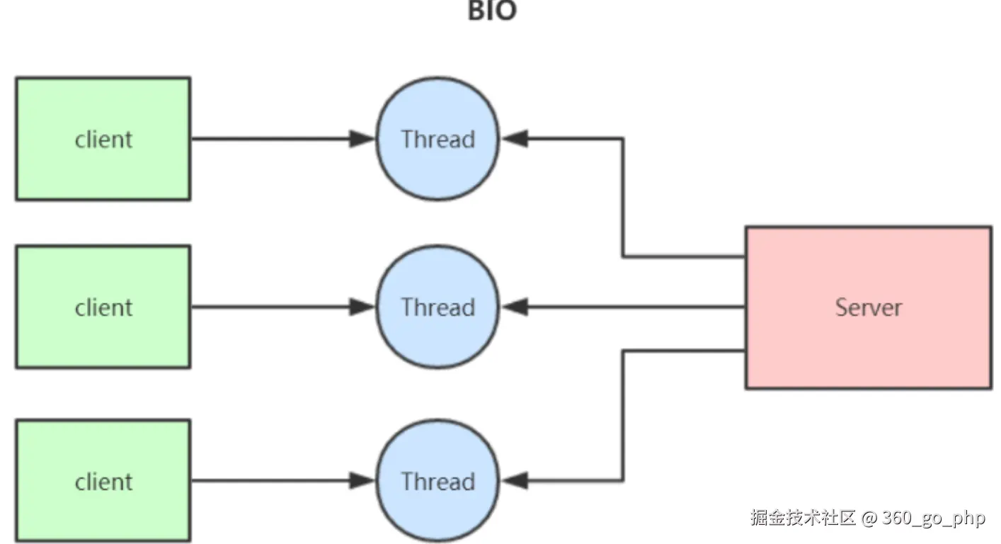 - 特点:每个客户端连接都会占用一个线程,且线程在读写数据时会被阻塞,直到操作完成。