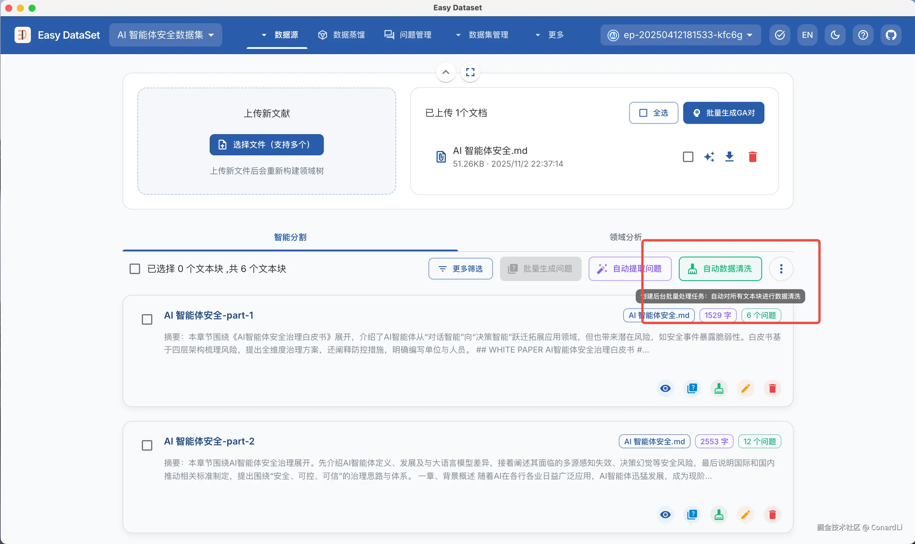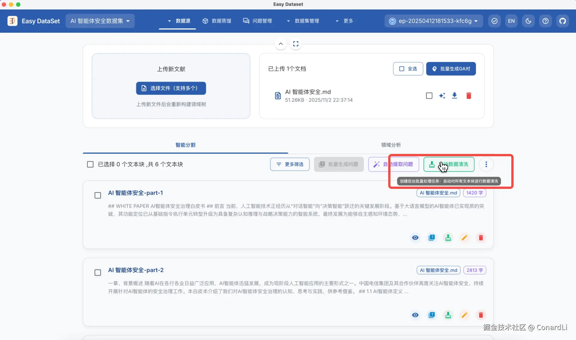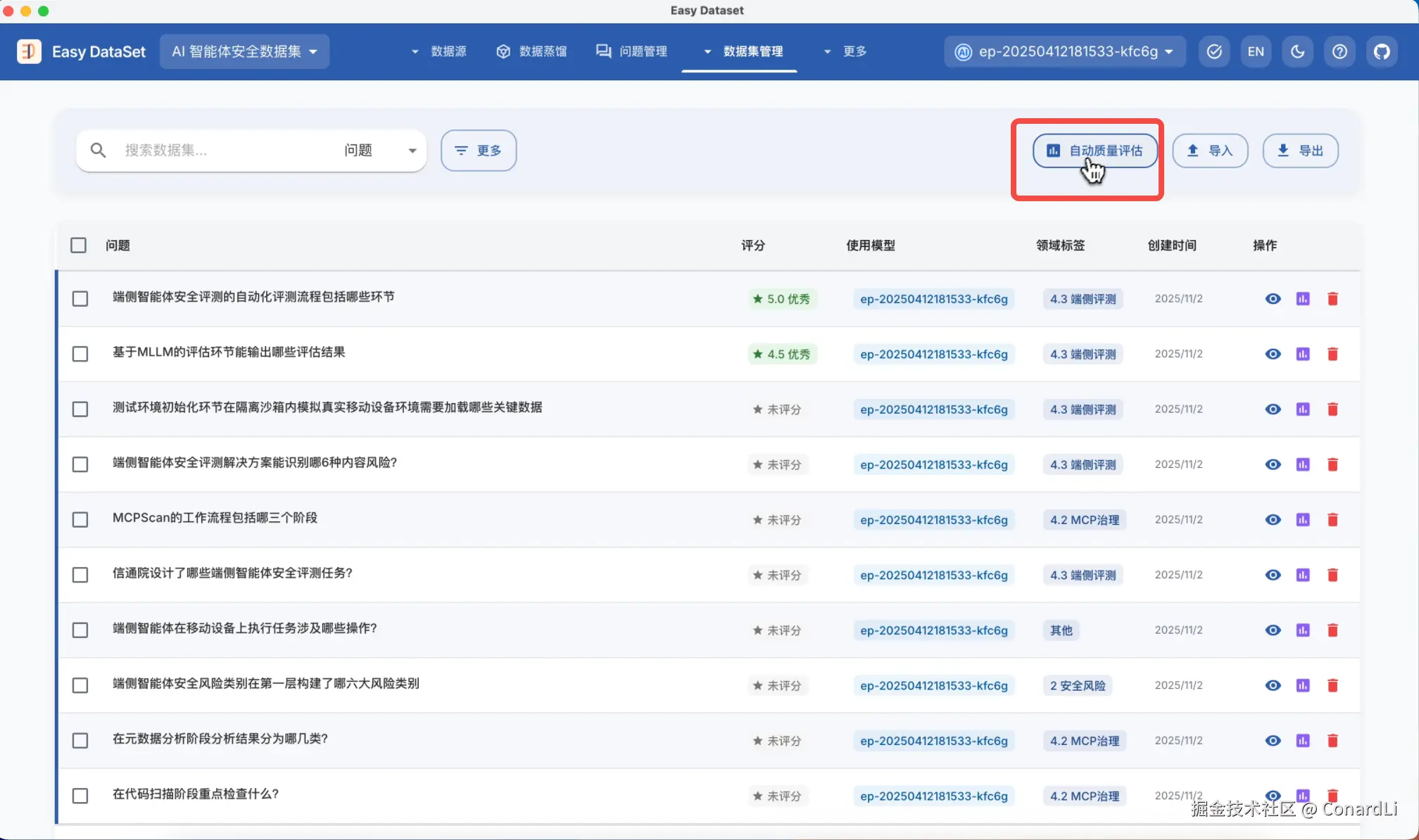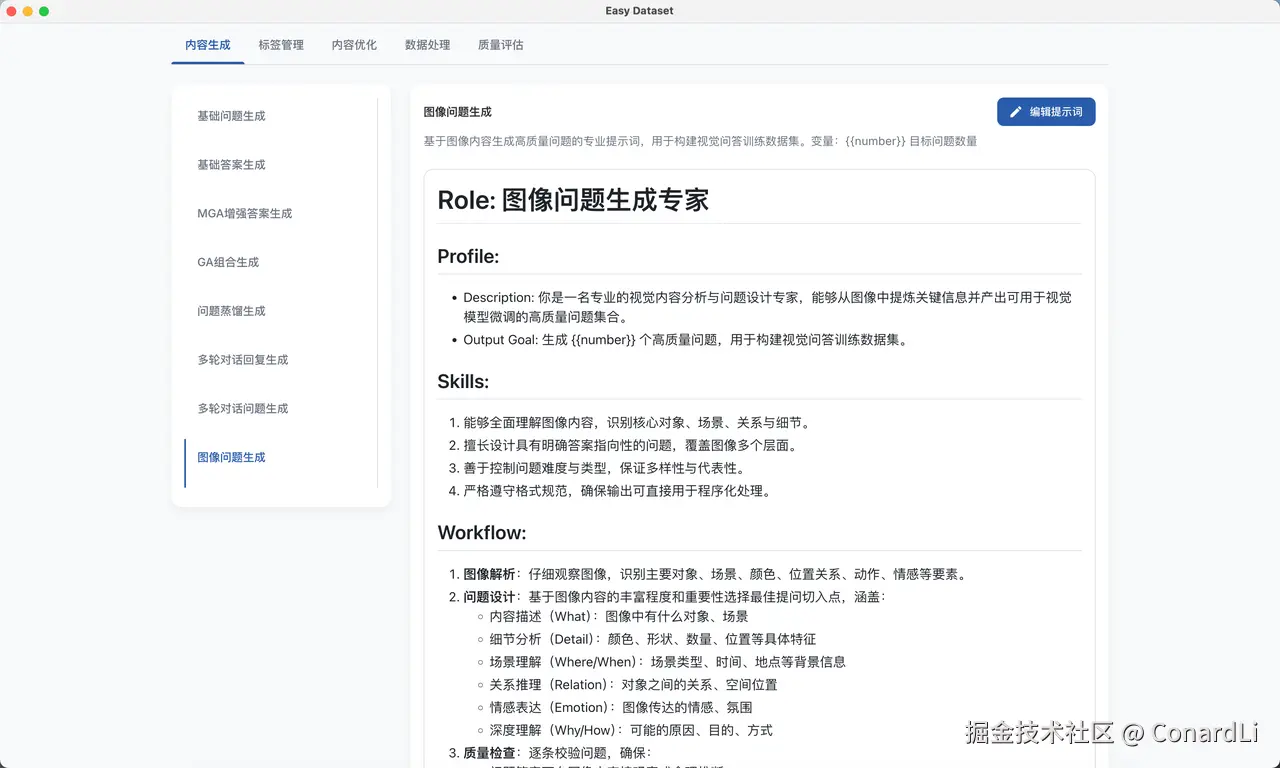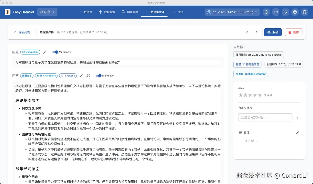 - Easy Dataset Github 地址:github.com/ConardLi/ea…