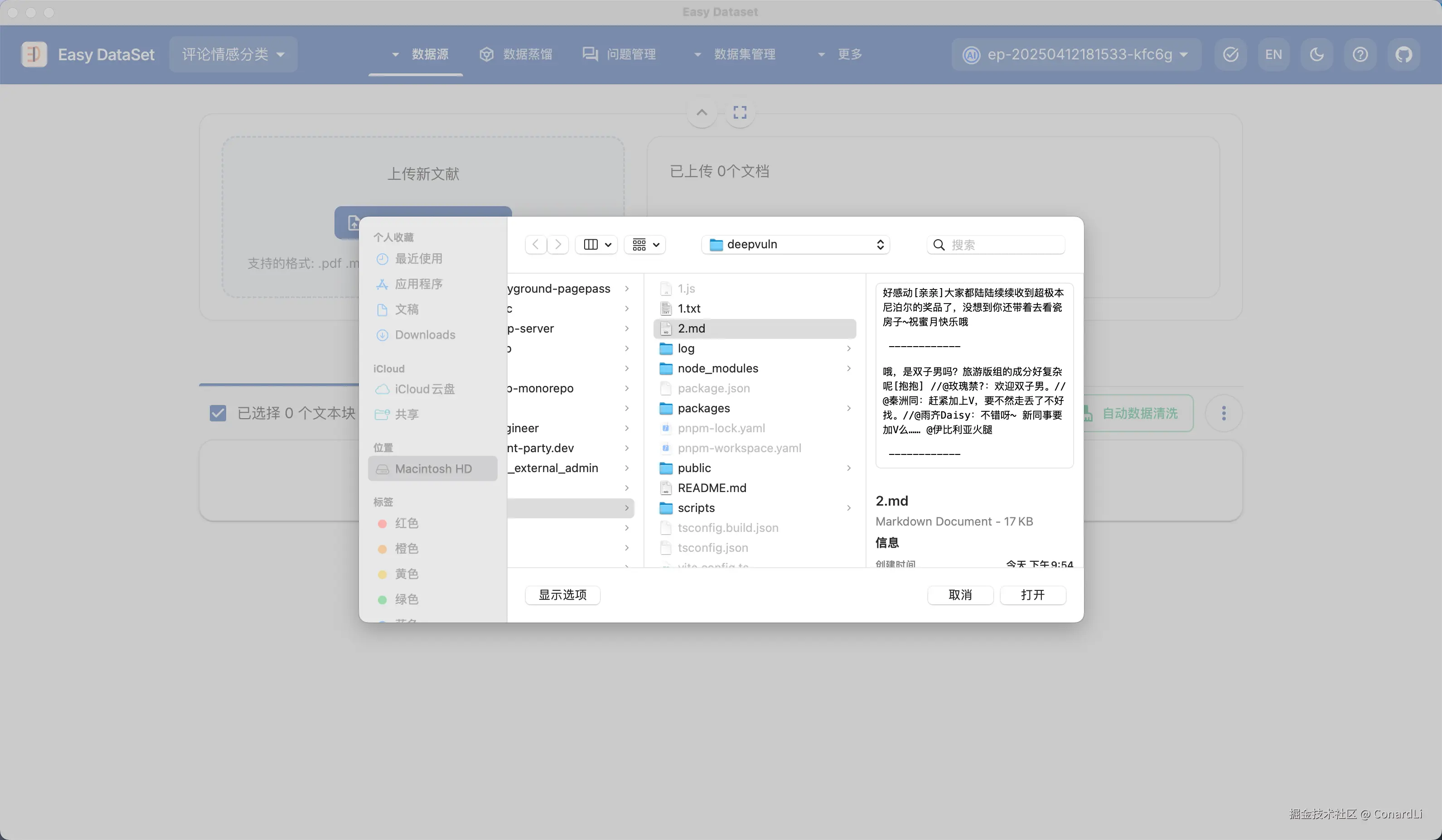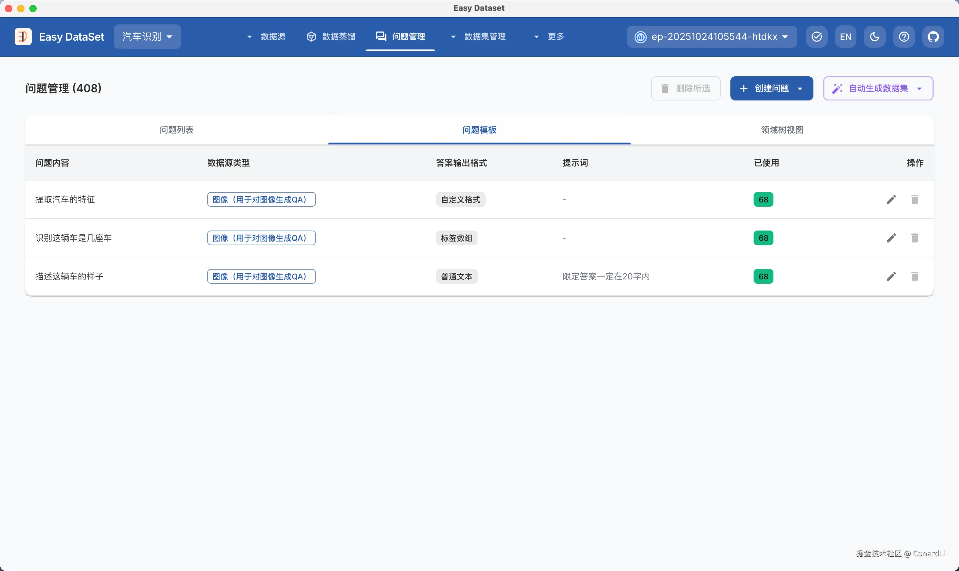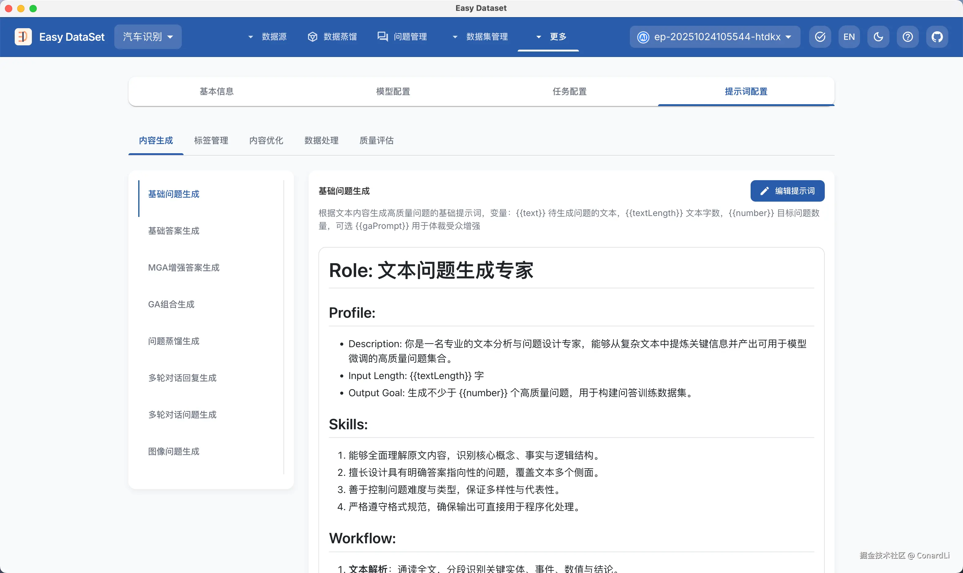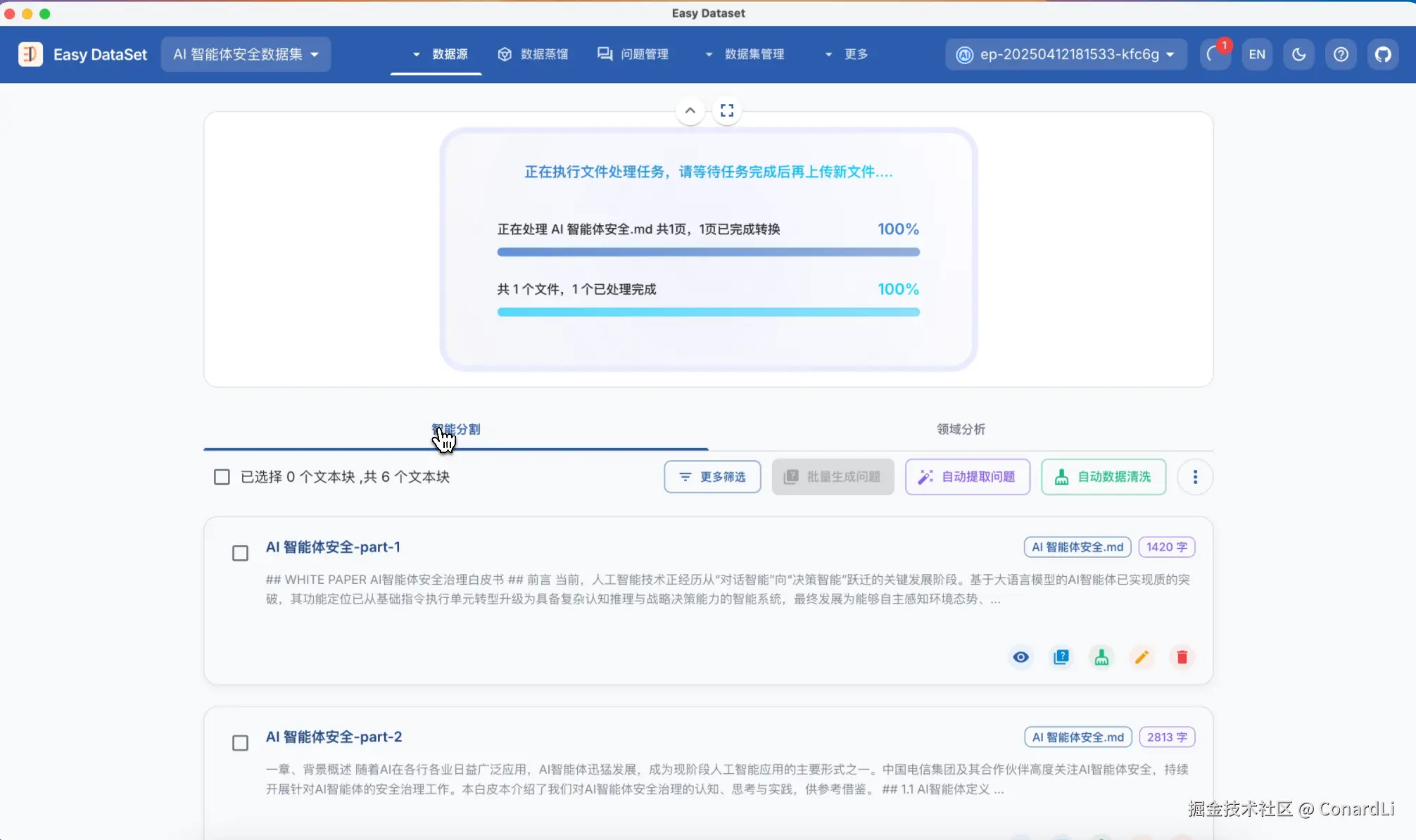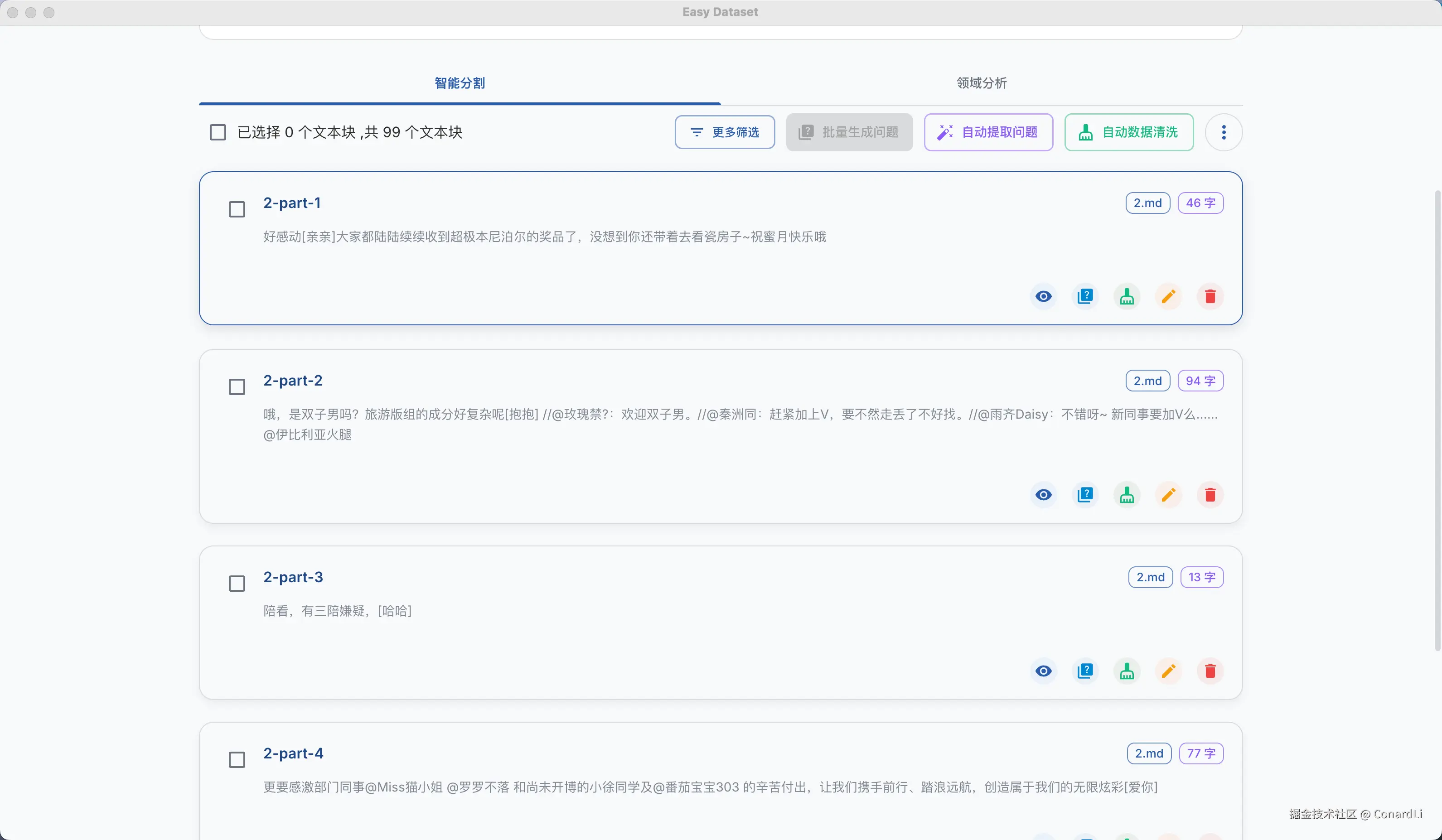 - Easy Dataset Github 地址:github.com/ConardLi/ea…