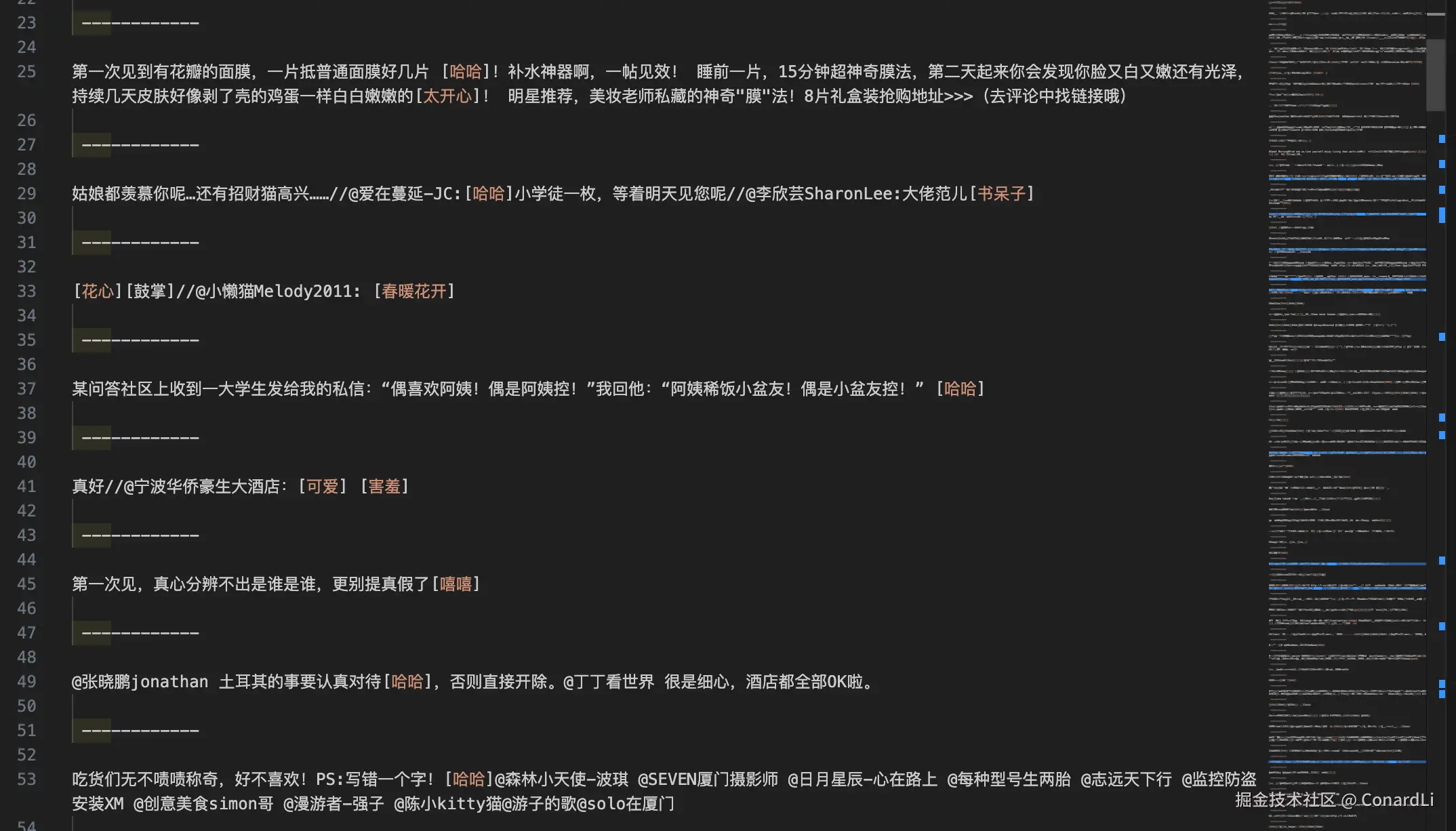 然后我们将得到按照评论内容分割的文本块:
