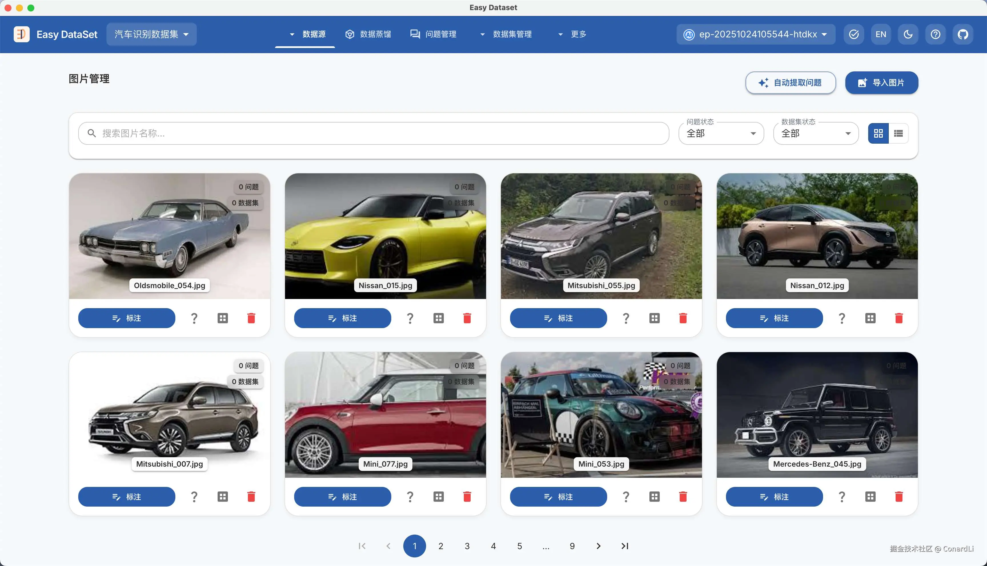 随后,来到图片数据集管理模块,我们可以看到已经生成好的数据集: