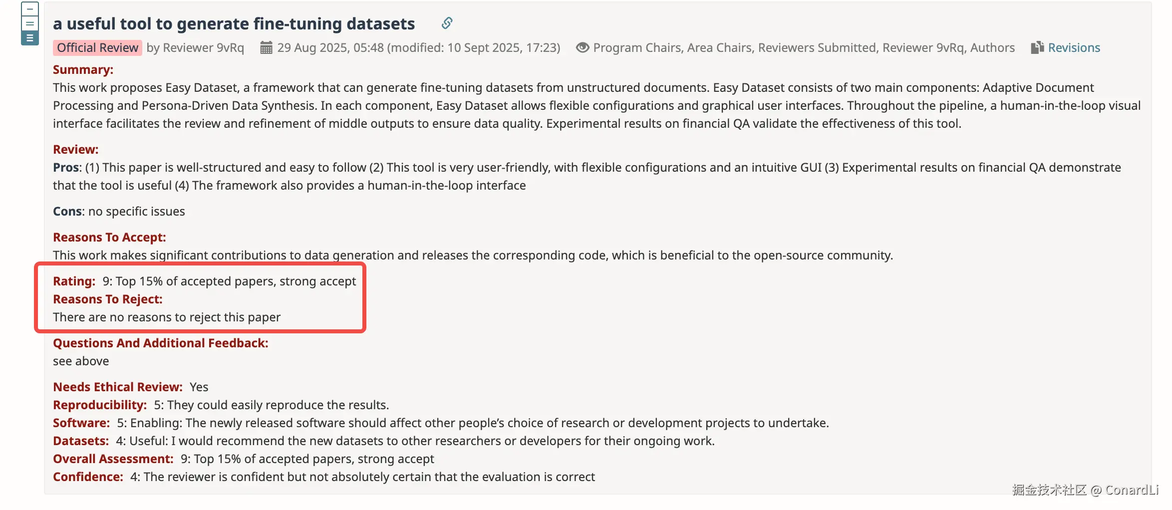 另外,Easy Dataset 论文已被 EMNLP 2025(人工智能领域顶级会议)接收,并且将在今年的 EMNLP 2025 System Demonstration 区域展出。