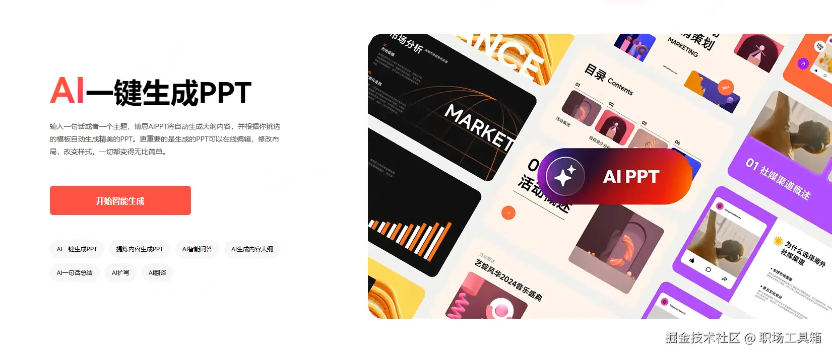 AI生成PPT平台如今随处可见,从国内的博思AIPPT、墨刀AIPPT,到海外的Gamma、BeautifulAI,再到AI智能体平台GenSpark和Manus,这些一键生成PPT的AI工具正在重塑我们创作和分享信息的方式。AI生成PPT平台将我们从繁琐的排版和设计工作中解放出来,让我们能够回归内容本身,专注于思想的表达和知识的传递。