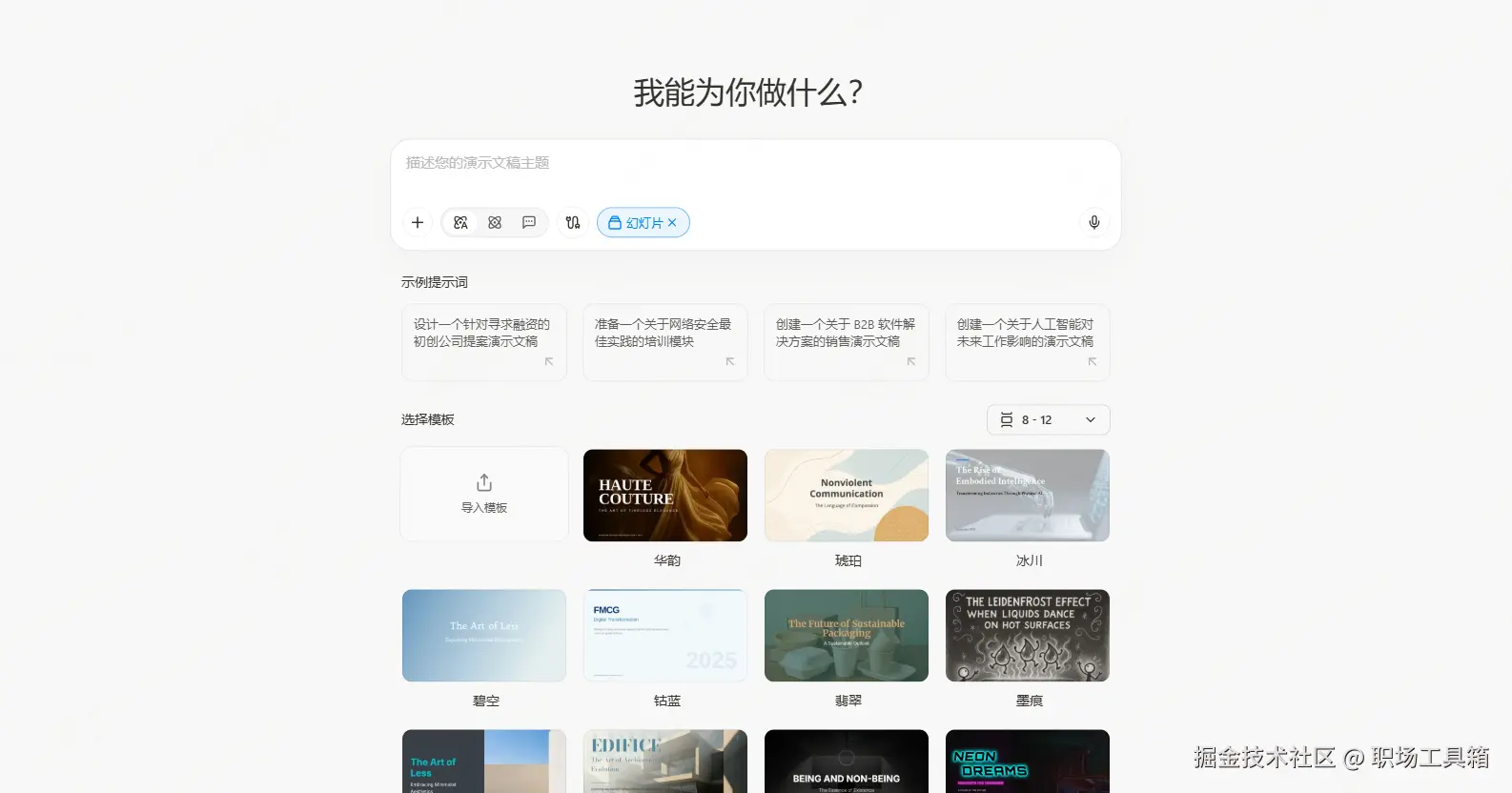 具体到选择哪一款AI生成PPT的软件,没有一个“放之四海而皆准”的准则,你可以根据自己的具体需求、使用场景、预算以及对设计风格的偏好进行综合权衡。希望本文分享的8个AI生成PPT平台,能够为你提供有价值的参考,帮助你在这个AI赋能办公的时代里,找到那个能让你事半功倍的“PPT神器”。