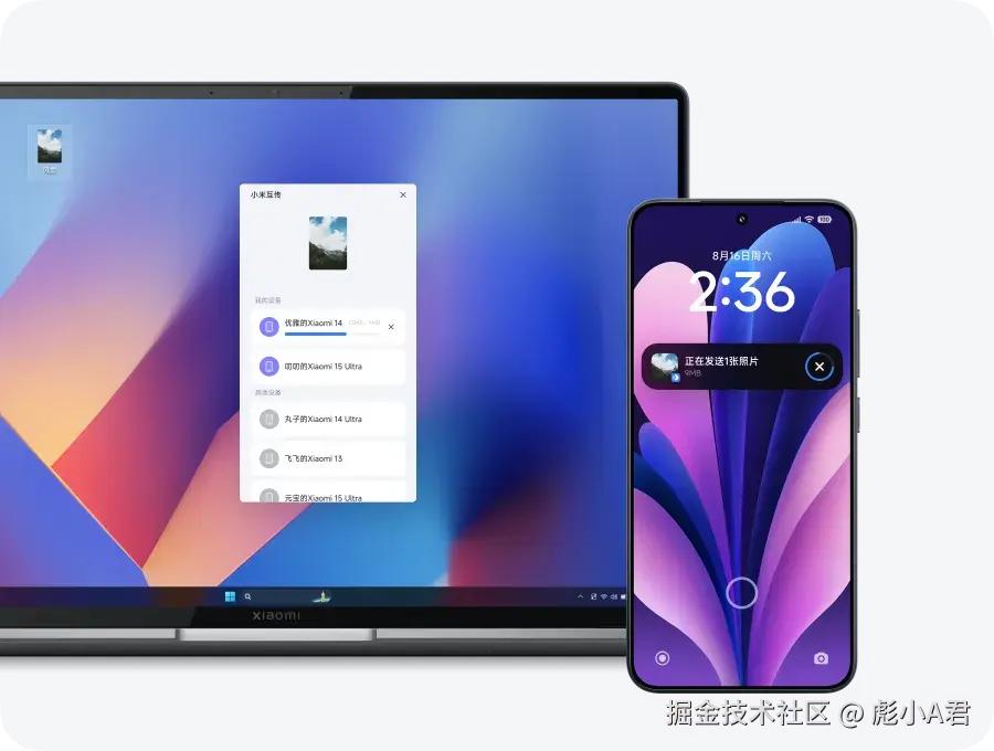 小米互联(非小米笔记本可用)该应用可让小米手机与 Windows 系统电脑互联,实现文件传输,同时电脑上可直接操作小米手机。