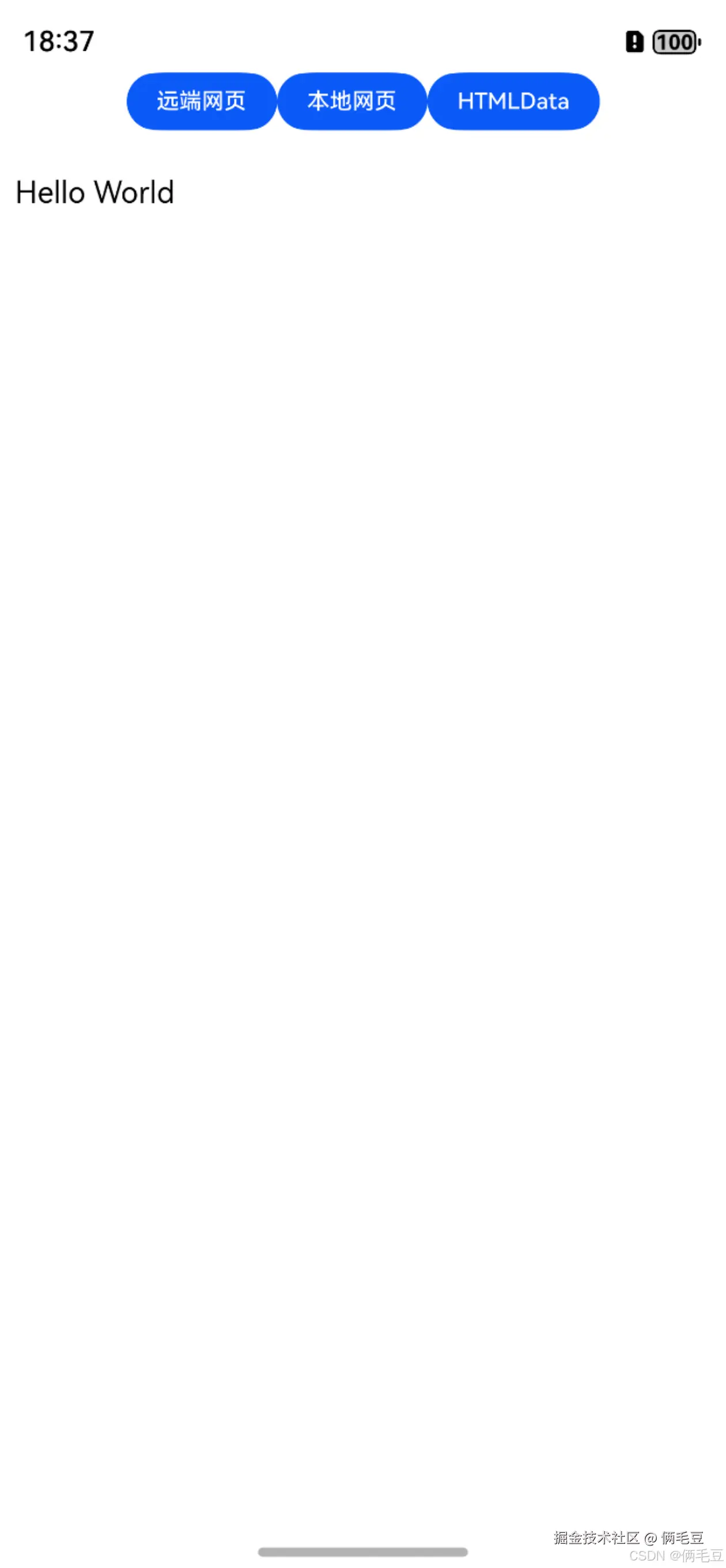 编译示例工程运行示例App之后,点击本地网页按钮,Web组件加载展示local.html,效果如下所示