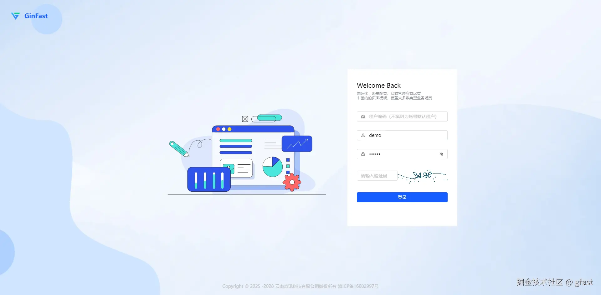 开源、免费、轻量级 Gin 多租户前后分离快速开发基础框架,基于主流技术,集成了 JWT 认证、权限控制、数据库操作等功能,助力开发者快速搭建一个后台管理系统。