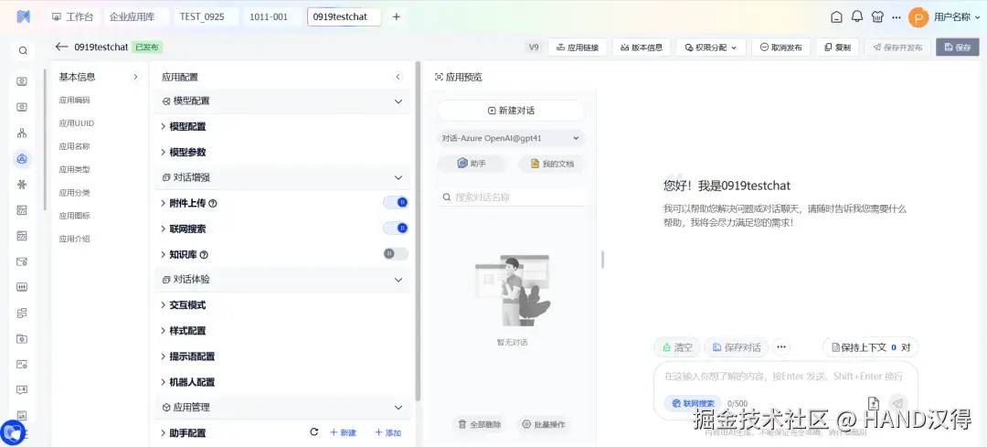 “定制AI应用”、“简易AI应用”模式的结合,极大的拓展了平台的使用边界。无论你是希望打造高度定制化、功能丰富的应用,还是只想快速上手、立即使用的应用,汉得AI中台都为你提供了灵活的选择。