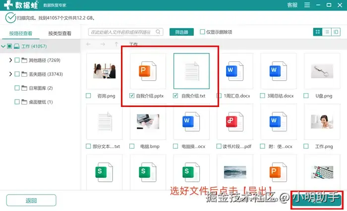 步骤2: 在显示出来的文件中,找到自己需要恢复的U盘文件,确认勾选好后点击【导出】;