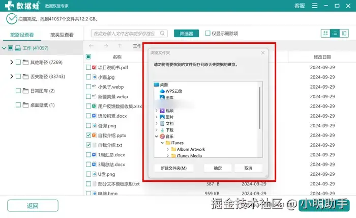 步骤3: 之后还需要为导出恢复的U盘文件,在电脑本地选择自己文件恢复后暂存的位置。