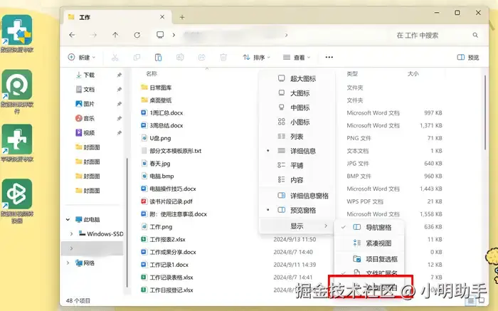 步骤1: 在【此电脑】打开U盘后,在上方点击【查看】,然后指向【显示】;