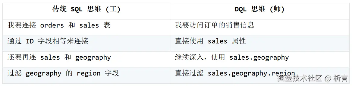 此乃典型的“数据库思维”——我们穷尽心力于“表如何连接”,而非“我们想要什么”。