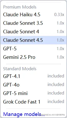 提示:通过界面中的"Manage models..."可以管理您的模型偏好设置。