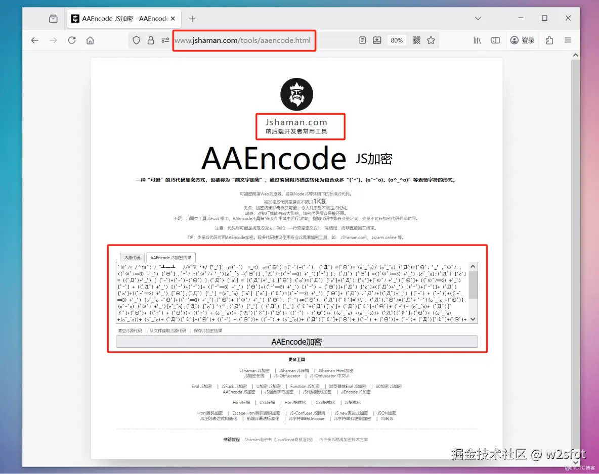 提示:少量JS代码可用AAEncode加密。较多代码建议使用如JShaman之类的专业JS混淆加密工具。