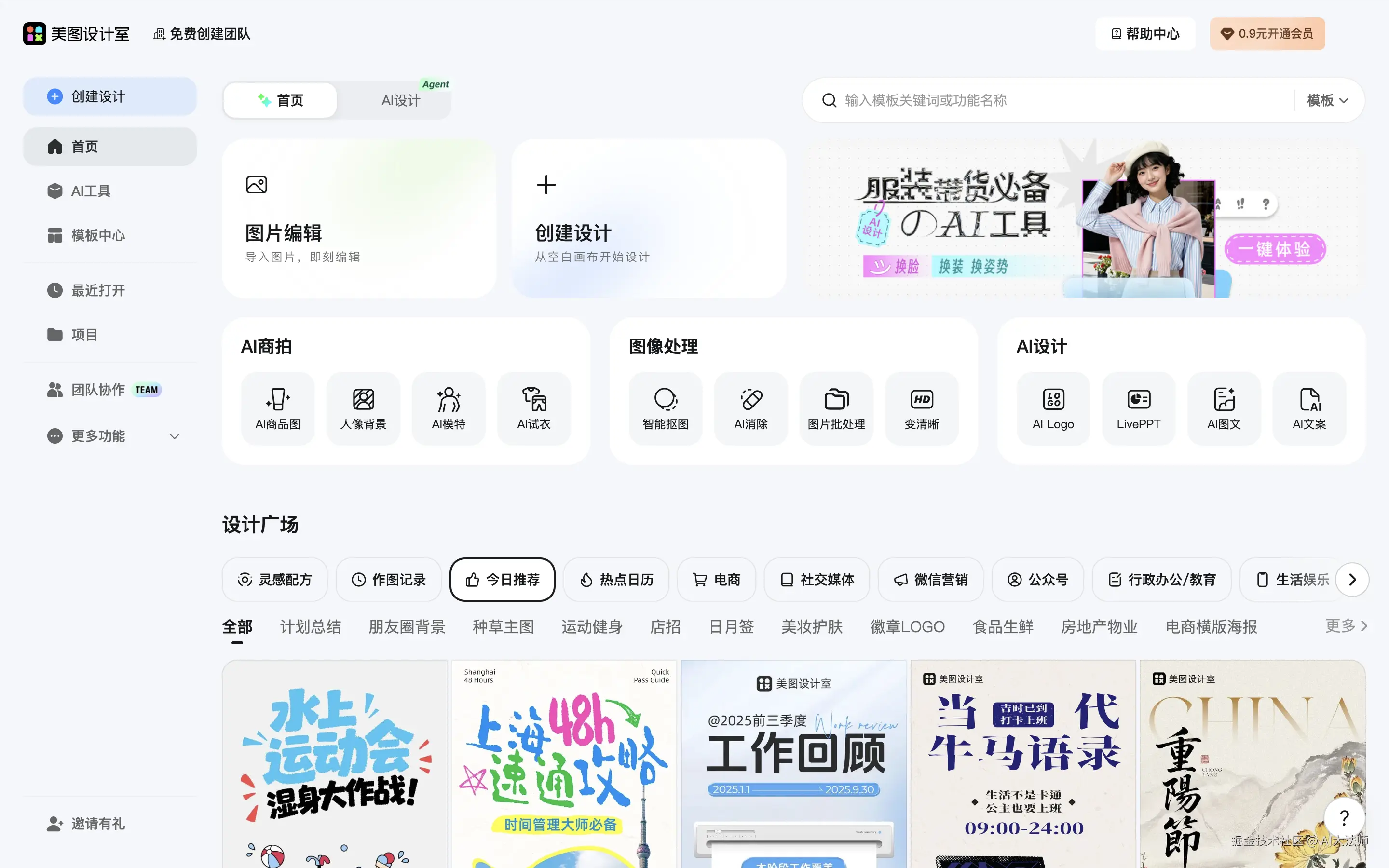 这个工具啥都能做,能 AI 设计主图版式、智能配色,素材库也丰富,还能基础修图。不用下载软件,网页上就能用,免费功能足够做基础主图,付费功能也不贵。操作不复杂,新手用来练手刚好,能快速做出合格的主图。