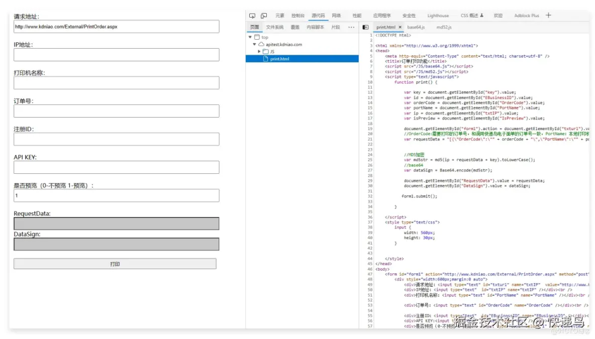 http://www.kdniao.com/External/PrintOrder.aspx,测试环境可使用快递鸟提供的线上测试页(https://apitest.kdniao.com/batchPrint.html),支持输入参数后直接发起请求,便于调试参数正确性。 - 请求头配置:设置