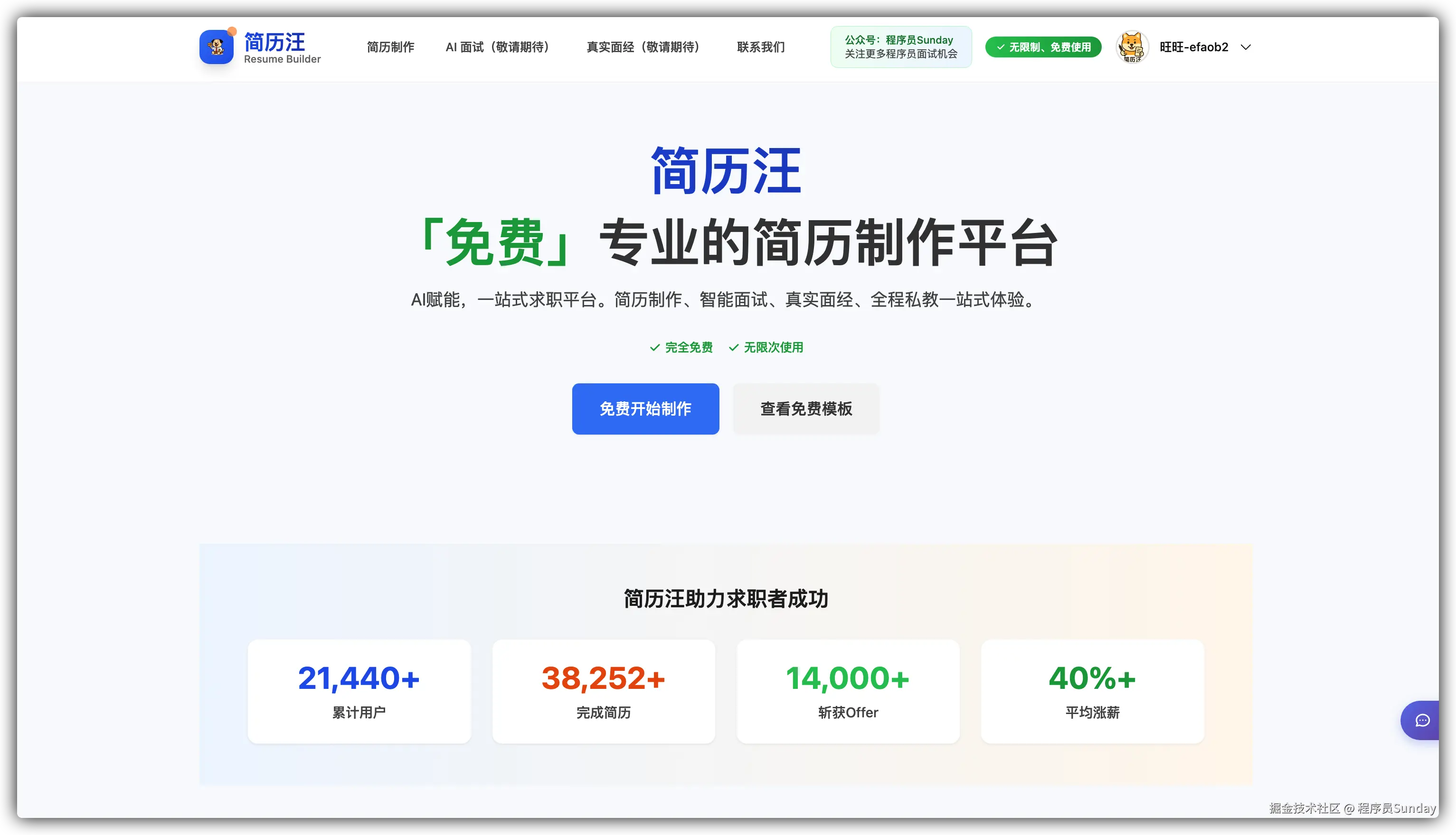 今天,我想和大家分享一个小小的里程碑。经过了一个月的努力,我们的 “简历汪” 已经积累了 21,440+ 用户,完成了 38,252+ 份简历的制作和下载。