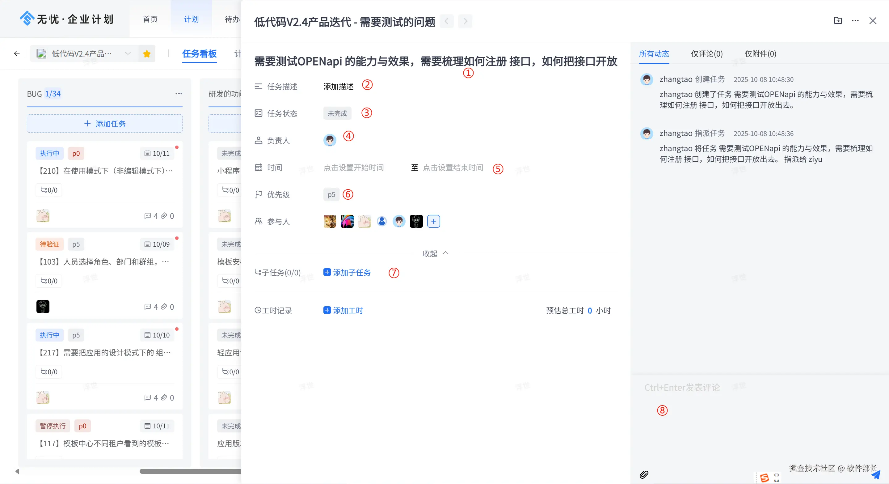 - **提升团队协作效率:**支持任务分配、子任务拆分、任务评论和文件共享,促进团队成员之间的高效协作。