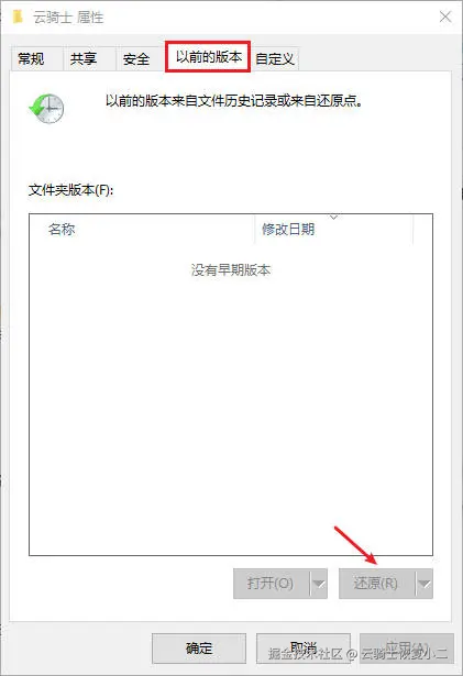 影子副本:对于非系统分区,可以尝试右键点击RAR文件原来所在的文件夹->属性->以前的版本。这里可能会保存着系统自动创建的还原点,或许能找到未被删除的文件。