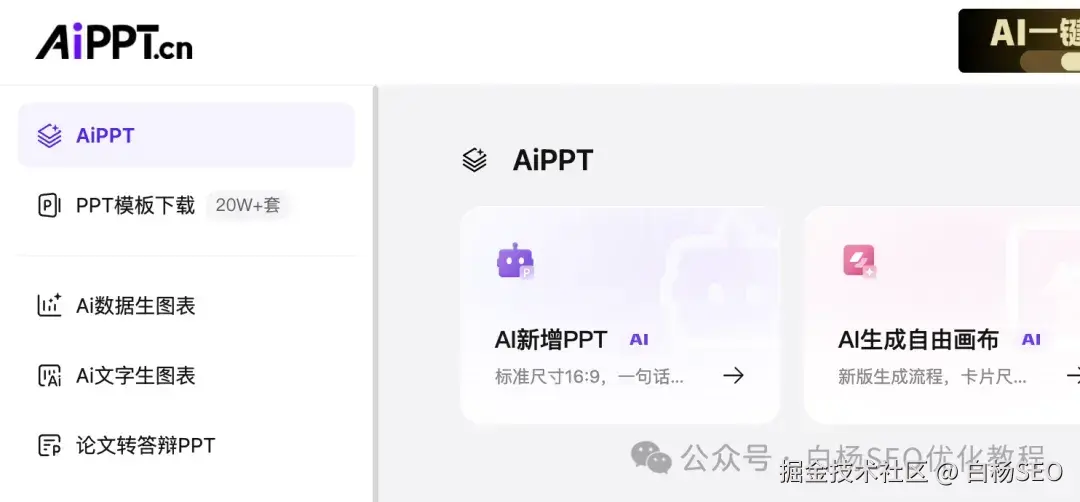 白杨SEO之前写过相关推荐:做ppt用什么工具好?ai ppt模板制作自动生成免费软件推荐【SEO案例】