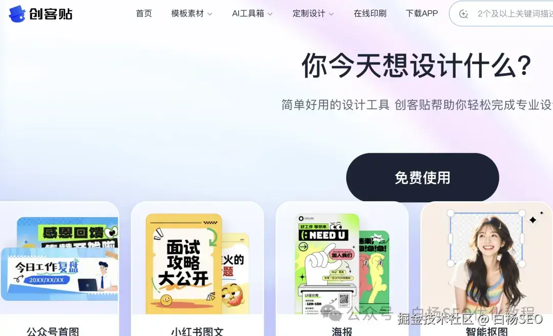 稿定设计适合企业做广告物料、LOGO 与电商详情页,AI抠图和智能排版省时80%。目前白杨SEO有用这个工具,开了年会员。