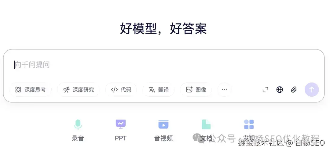 通义千问,白杨SEO现在用得比较多了,尤其自己网站上部分内容。以前主要用kimi,现在两者都有用。文案写作好工具。