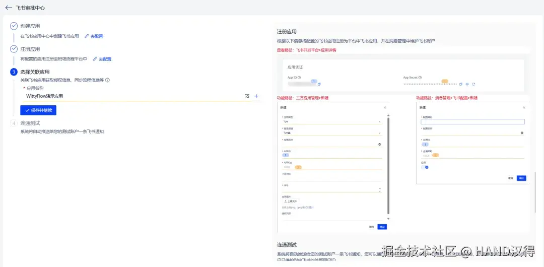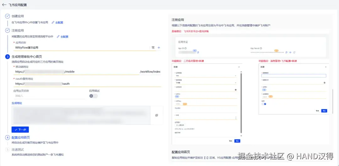 将飞书中创建的应用注册至当前系统,您需要获取飞书应用的关键信息并在系统的中进行配置。