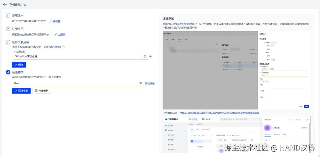 步骤三:选择关联应用 选择已配置的飞书子应用。