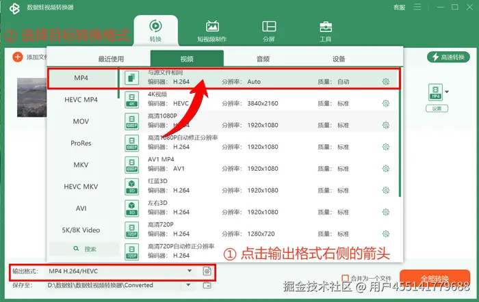 妙招一:数据蛙视频转换器将视频MOV转换成MP4