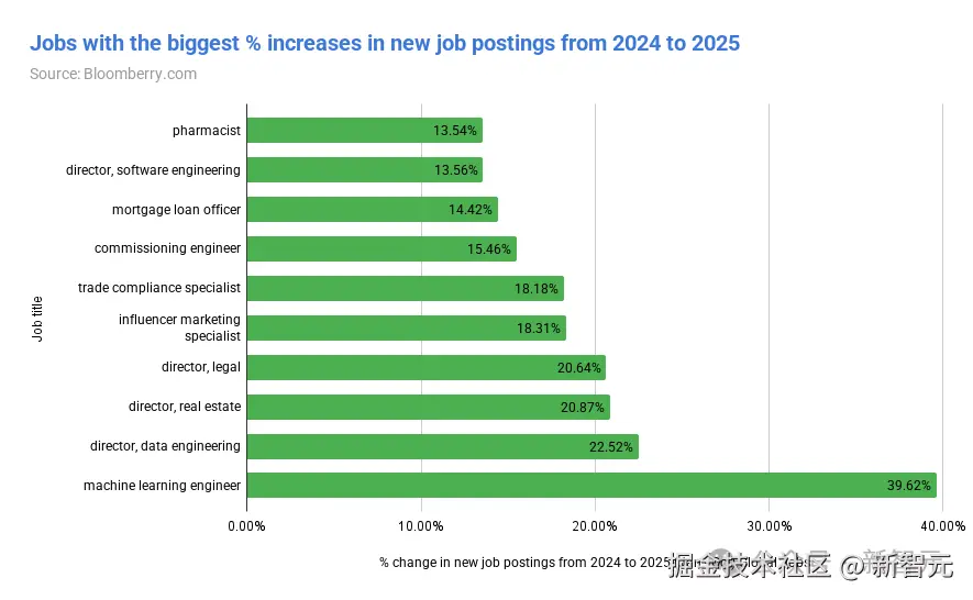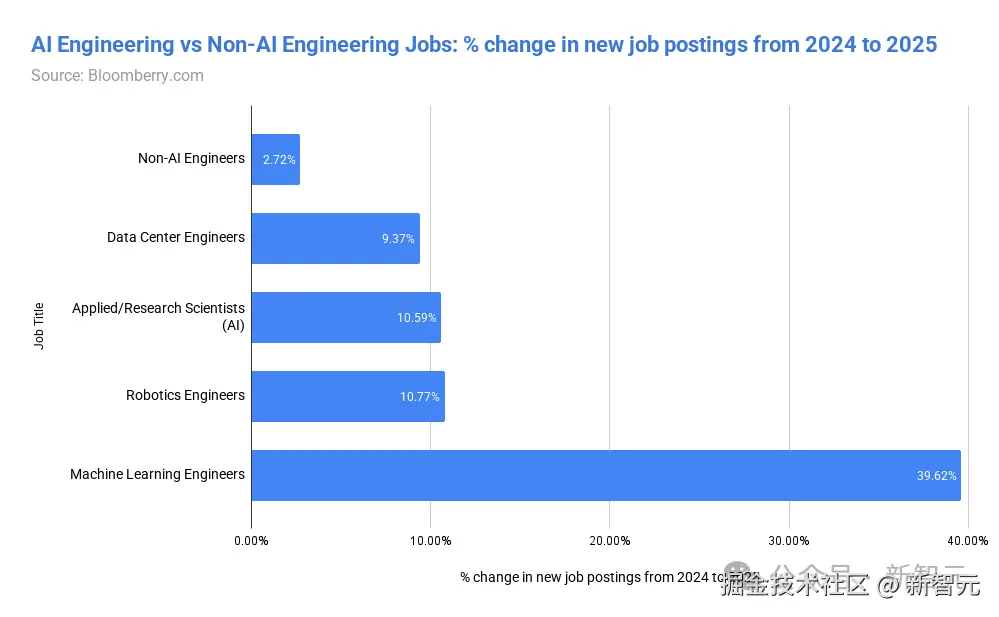 从 2024 年到 2025 年,机器学习工程师的招聘岗位飙升了 40%,是所有岗位中增幅最大的。