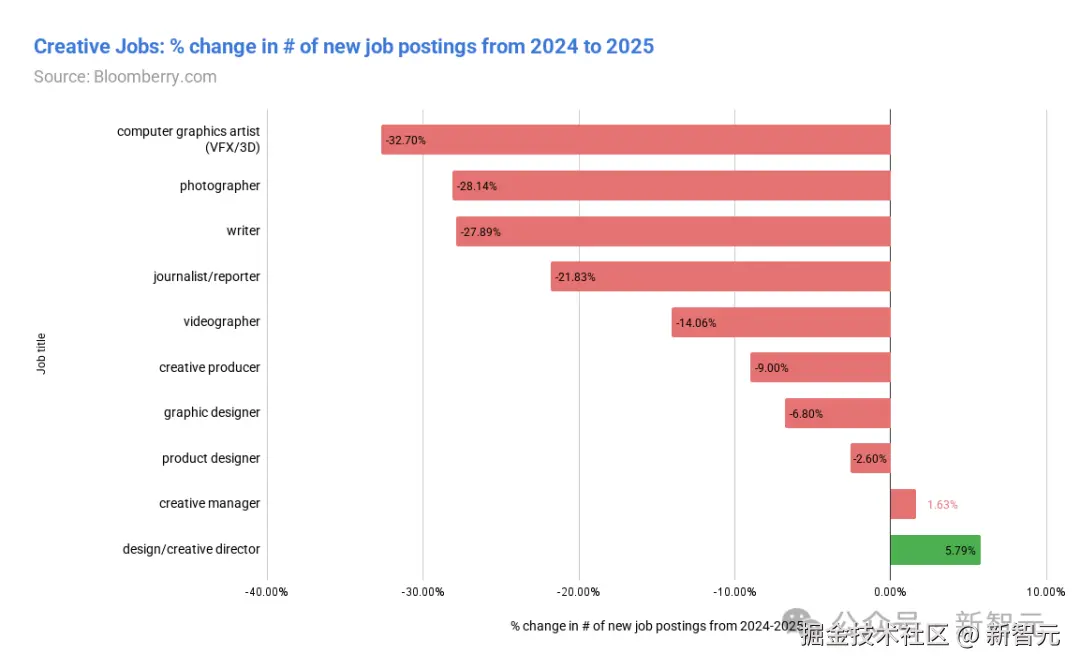 - 创意工作正在分裂为战略岗(稳定)和执行岗(下降)。